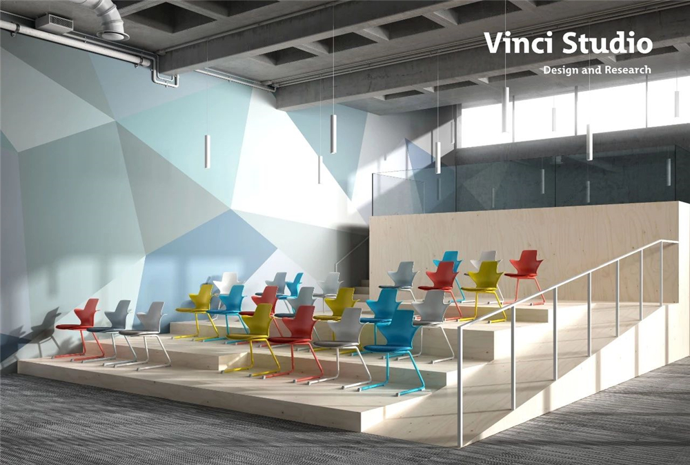 為了營(yíng)造輕松活躍的學(xué)習(xí)氛圍,緩解高年級(jí)的學(xué)生的學(xué)習(xí)壓力。Vinci studio選擇了飽和度偏低但顏色明麗的色卡作為座椅的顏色選擇。一方面營(yíng)造了輕快的氛圍,另一方面避免了明麗顏色過于低齡的問題。