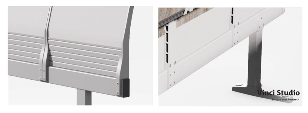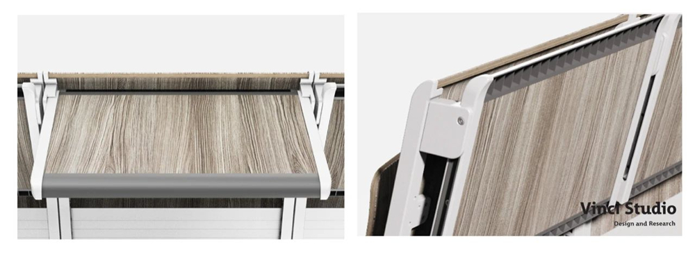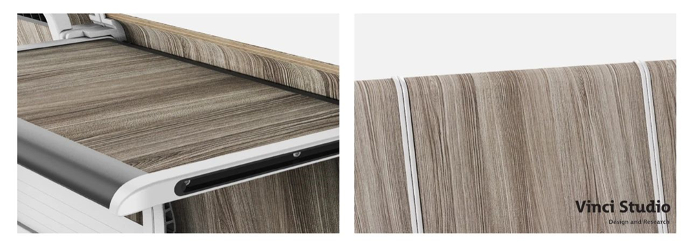 Vinci Studio提出以模塊化系統化的產品方案,來滿足不同室內大小、不同使用場景的需求。更加簡約的設計本身占地面積小,可自動回位的旋轉椅座讓起身和行走更便捷。寫字板高度可根據是階梯教室還是平底教室來調節,從而一直保持最舒適的書寫高度,培養學生正確的坐姿習慣。