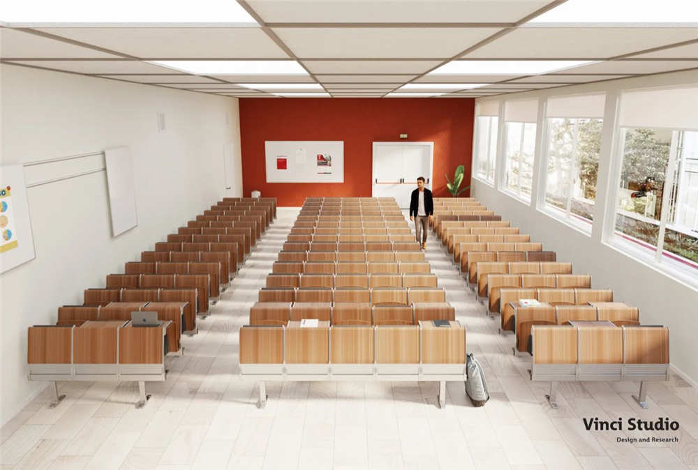 很多人可能對學校階梯大教室以及合班教室有著固有的印象——家具老式,色彩沉悶,似乎上大課是一件枯燥的事情。