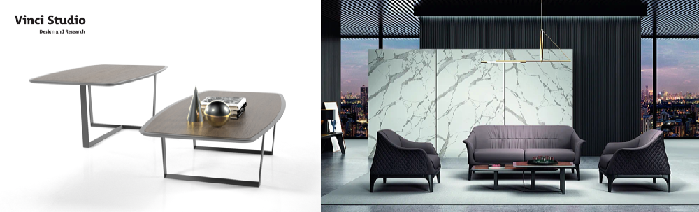 在辦公室設置會客空間,有利于提高CEO工作的高效性。因此,在會客區域我們設計了一套矮幾,可組合使用,也可分開使用,可以根據室內設計和布局,靈活地進行調整,滿足不同用戶和場合的需求。
