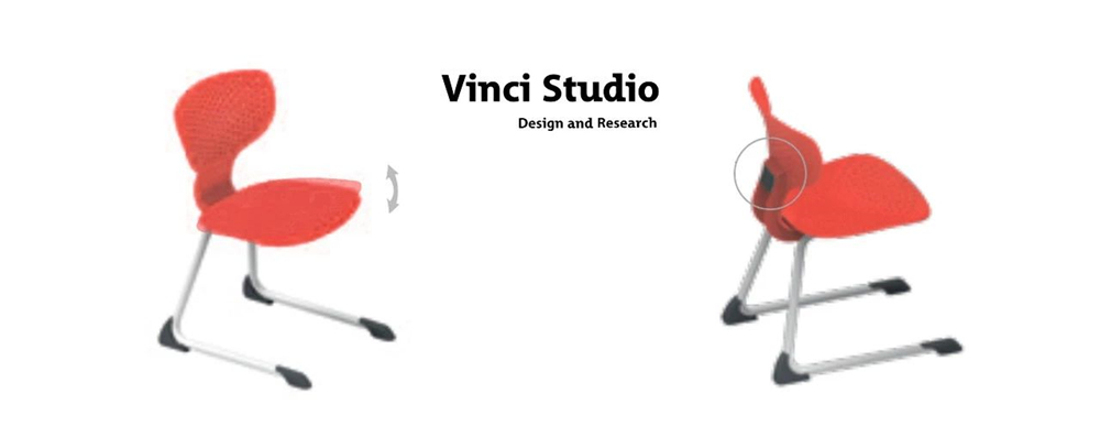 vinci studio 根據產品使用對象,進行用戶描像,并根據用戶是充滿活力,活潑好動的學生形象特點,對座椅進行細致周全的設計。首先以靈活的座椅板面設計,允許座椅小幅度的上下活動,符合用戶多動的變化式坐姿習慣,以較好的彈性貼合身體。而座椅后背也設置了手提孔,允許使用者便攜的挪動椅子,滿足靈活性。