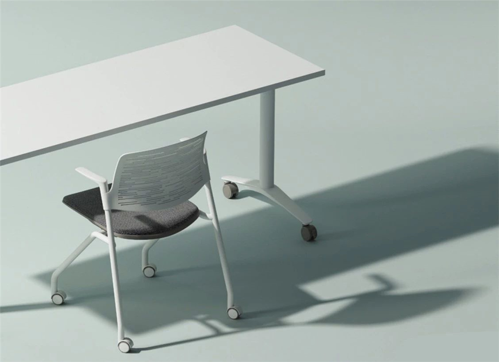 桌面可以一鍵翻折,便于折疊,在小群體的使用情境下,可以提供更大的空間,實(shí)現(xiàn)最大化的空間利用。同時(shí)FLEXA座椅也以滿足合理的利用空間需求——可折疊,可堆疊,實(shí)現(xiàn)辦公空間的座椅儲(chǔ)備功能,同時(shí)又不占用過(guò)多空間。