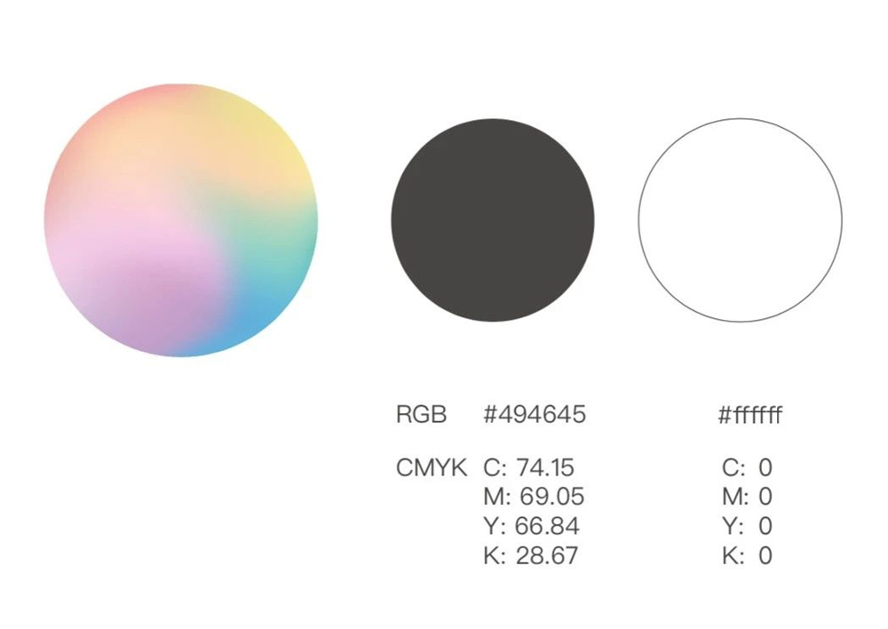 品牌色彩吸收這一特色,設(shè)定為銀色、深灰色、鐳射色等未來主義的色系傳遞品牌的科技感和新潮,以及深灰色和白色,呈現(xiàn)品牌簡約時尚的一面。