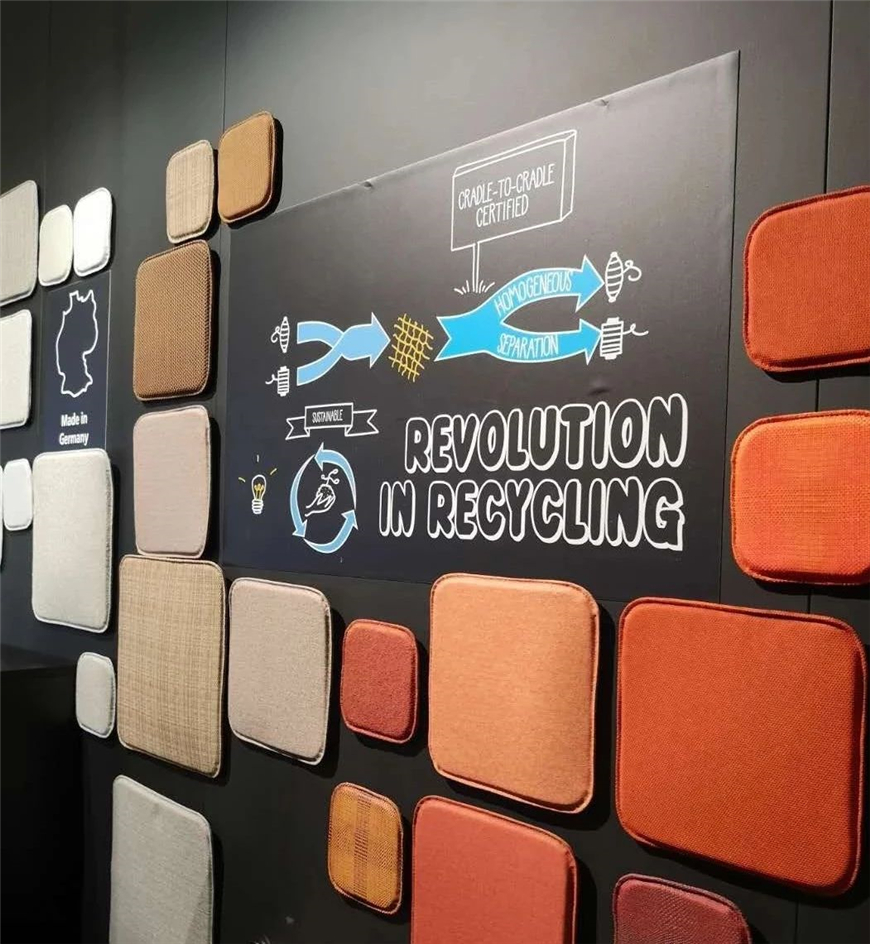 Climatex公司研發新可持續產品覆面。Cradura是一種具有無限回收能力的聚合物纖維,它的設計理念是“從源頭到源頭”。該公司每年能夠從生產廢料,海洋中發現的漁網和回收的地毯碎片中制造2萬噸新的Cradura纖維。該纖維在使用中具有舒適的質感并且易于護理??捎糜谧胃裁?。