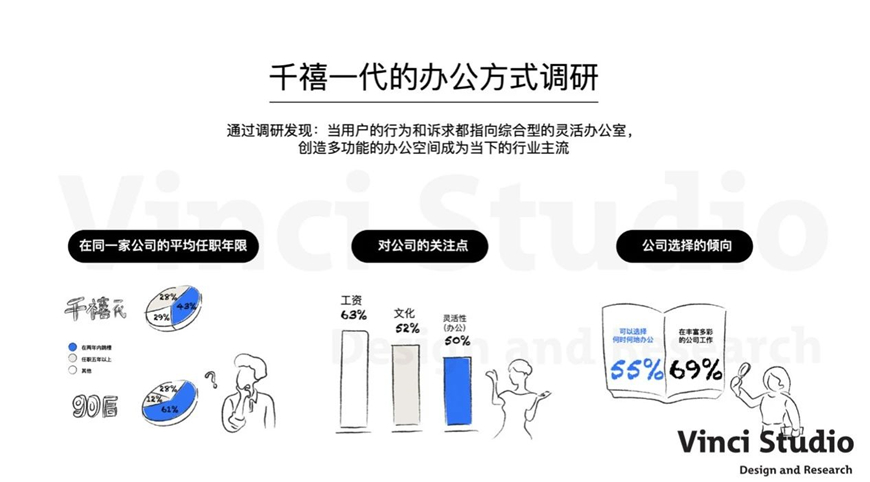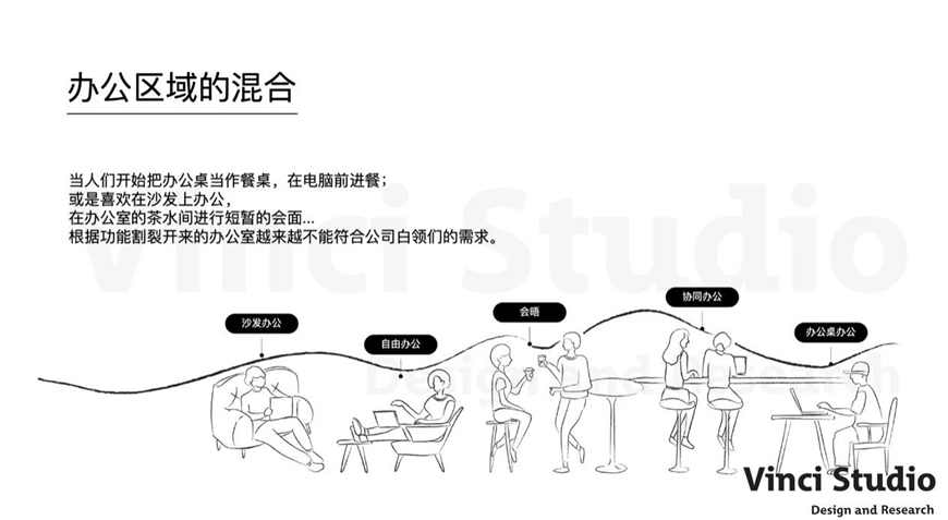 而且,年輕一代對辦公的訴求也指向綜合型的靈活辦公室。因此,Vinci Design認為,為敏捷型辦公方式構造多功能的辦公空間將成為行業主流。