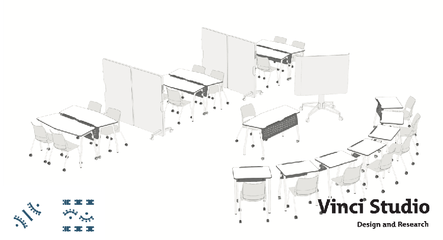 Turing折疊桌作為一款創(chuàng)新的產(chǎn)品做出來,我們希望通過一些策略性的內(nèi)容更好地幫助Turing講述它的故事。根據(jù)當(dāng)下的教學(xué)模式,我們以Turing折疊桌構(gòu)建了四種不同的教室布局,分別是「標(biāo)準(zhǔn)講授模式」、「頭腦風(fēng)暴模式」、「小組學(xué)習(xí)模式」和「靈活轉(zhuǎn)換模式」。