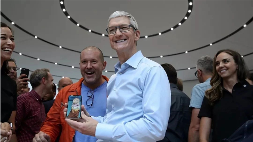 2017年11月,蘋果CEOTim Cook與CDO Jonathan Ive 在iPhone X 銷售儀式上